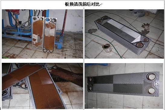 拆開設備采集垢樣化驗-→②查看設備結垢情況-→③查明設備材質-→④制定清洗方案-→ ⑤板片逐個物理清洗-→⑥檢查膠墊情況-→⑦更換零配件-→⑧清洗浮沉-→⑨強制浸泡清洗-→⑩清水沖洗干凈-→⑾恢復設備原狀。